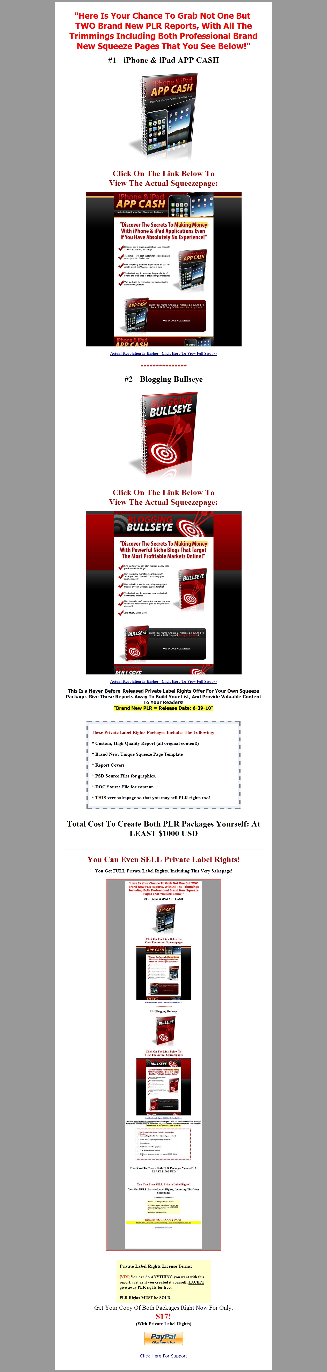 Total Cost To Create Both PLR Packages Yourself: At LEAST $1000 USD