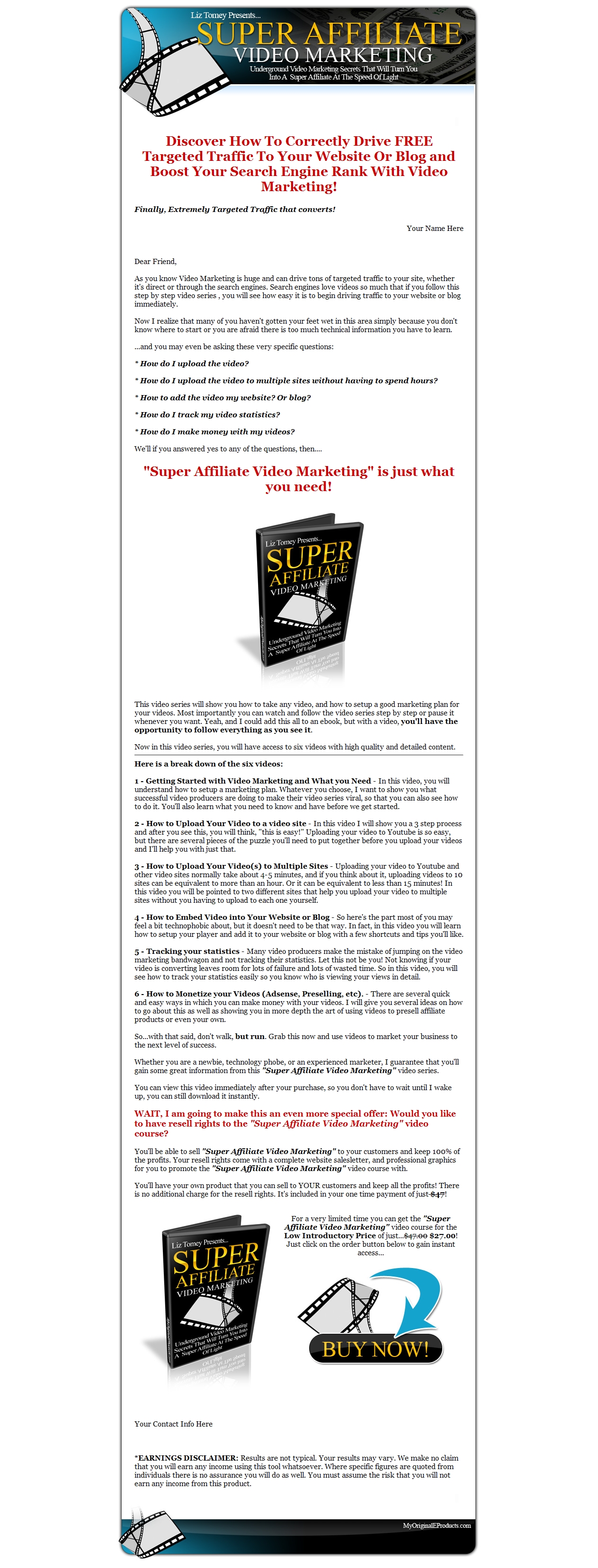 Whether you are a newbie, technology phobe, or an experienced marketer, I guarantee that youll gain some great information from this Super Affiliate Video Marketing video series.