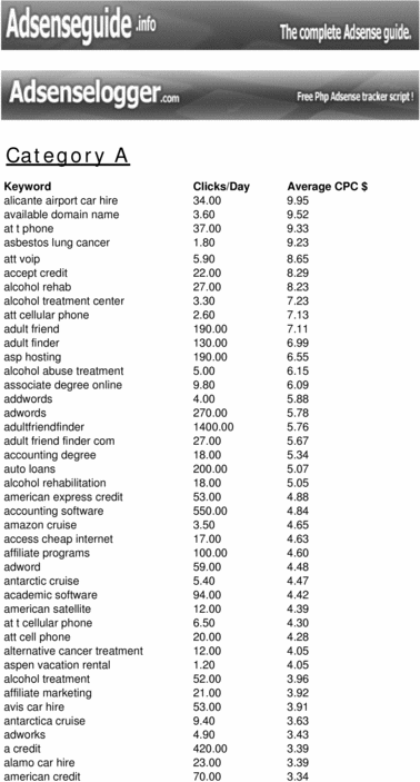 the best ever 4000 Adsense Keywords