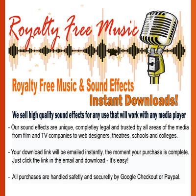 If you would like more than one sound effect file please use the ´add to cart´ buttons. Once you have downloaded the sound effect(s) you can freely use and distribute the files inside your commercial multimedia projects such as film, TV, video, radio, theatre, Flash applications or website backgrounds etc.