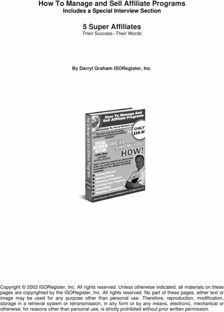 How To Manage & Sell Affiliate Programs. Includes a Special Interview Section. 5 Super Affiliates, Their Success - Their Words.