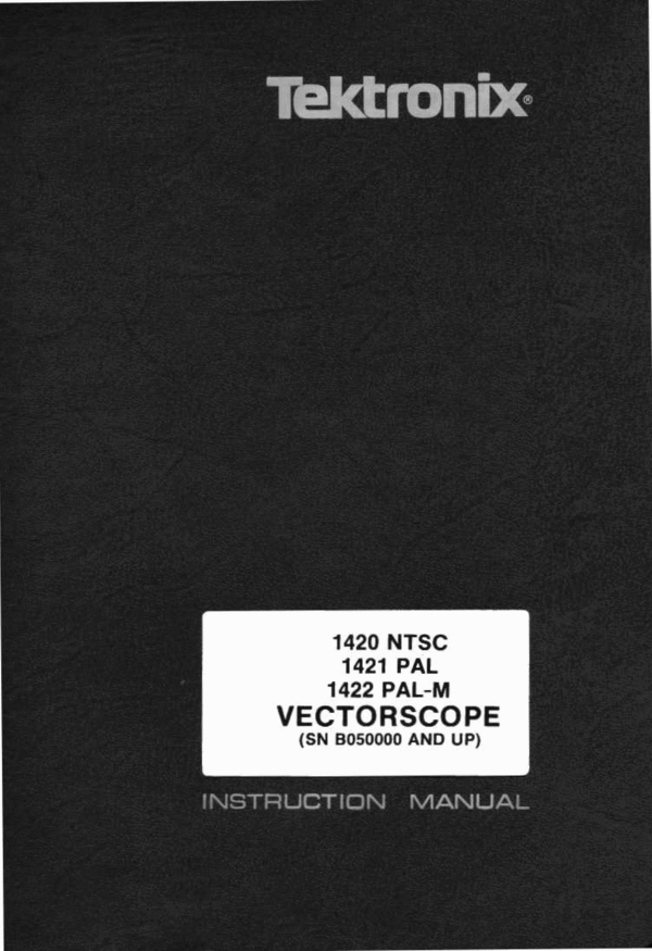 This is a complete scan of the Tektronix "Instruction" (Service and Operating) Manual for the Model 1420, 1421 and 1422 Vectorscopes, serial numbers B050000 and higher.