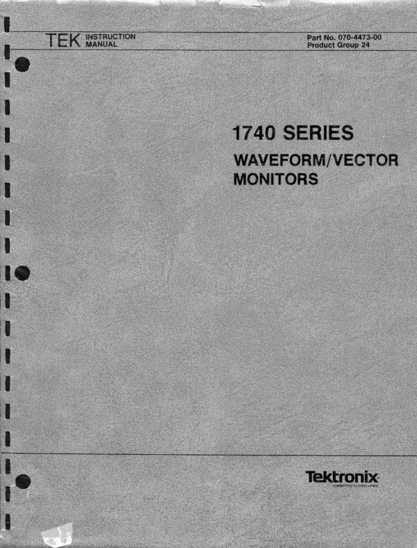 This is a complete scan of the Tektronix "Instruction" (Service and Operating) Manual for the Model 1740 Waveform Monitor/Vectorscope Series.