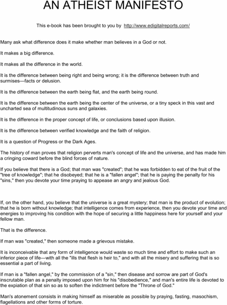 Regardless of your religious beliefs, or lack thereof, the ATHEIST MANIFESTO is an interesting document.