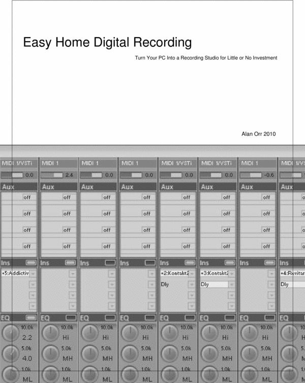 Easy Home Digital Recording was written by a musician for musicians. Learn to use D.A.W.s like Pro Tools, Sonar, Cubase. Bluff your way around any software. How to setup a home studio for next to nothing. Includes links for two great free synths.