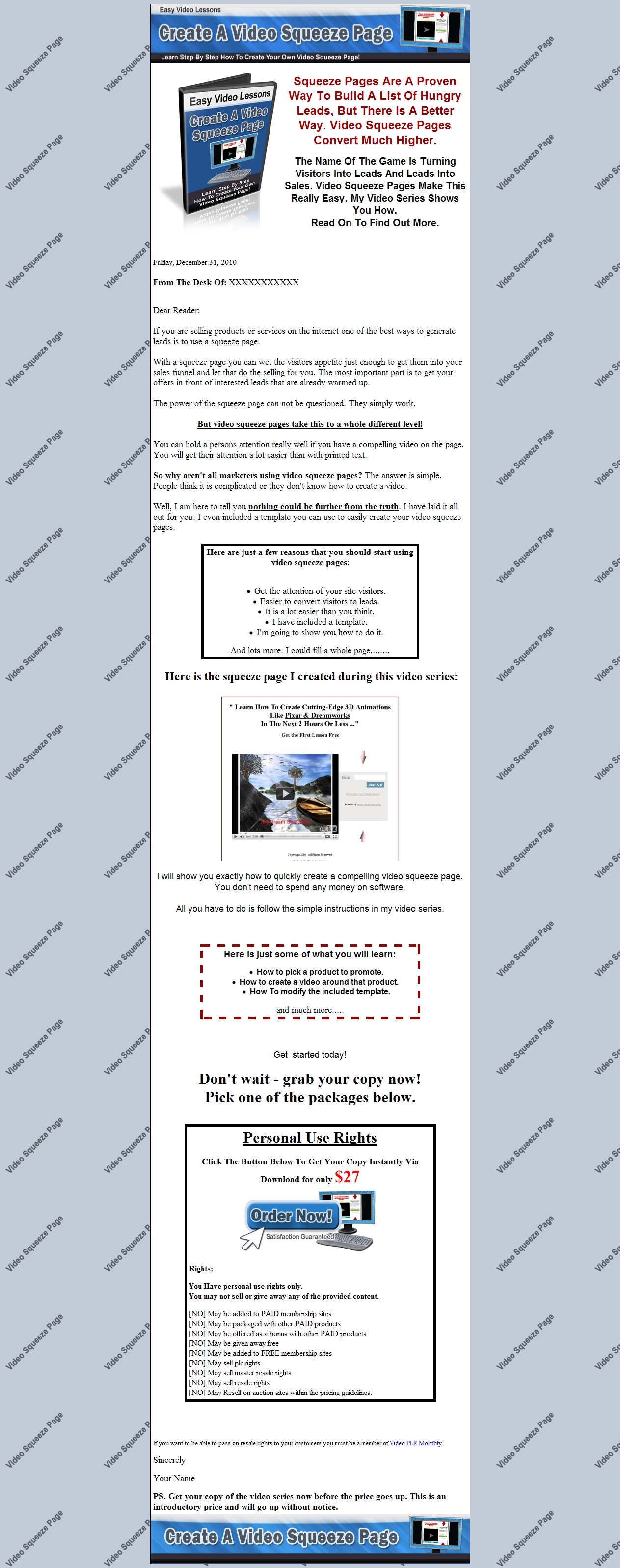 Squeeze pages are a proven way to build a list of hungry leads, but there is a better way. video squeeze pages convert much higher.