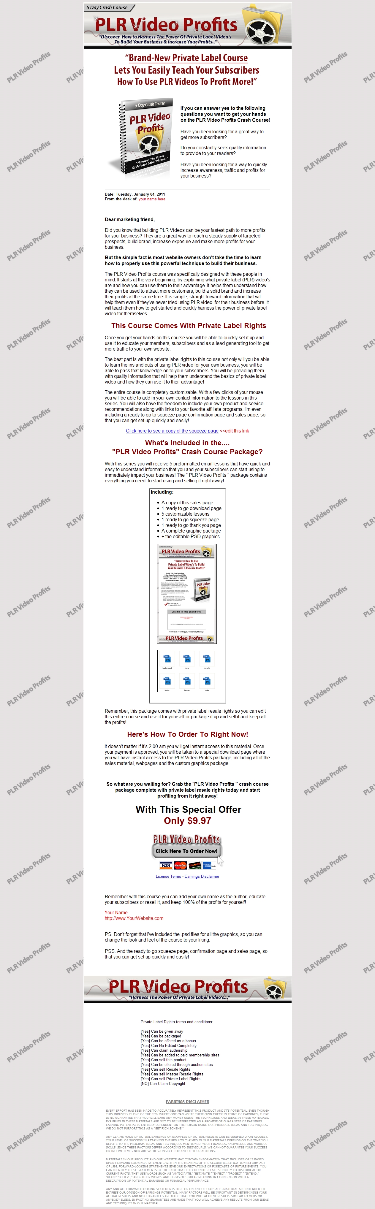 Remember, this package comes with private label resale rights so you can edit this entire course and use it for yourself or package it up and sell it and keep all the profits!