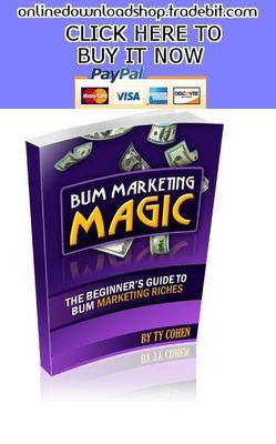Bum Marketing or the Bum Marketing Method is a simple and almost dummy proof variation of article marketing. Bum Marketing is really for anyone who is selling their own product, an affiliate product or wants to get traffic to a website, whether it is an opt-in page, an AdSense site, or a site full of affiliate links. Here is how it works: You write keyword optimized articles about under-exposed niches, submit them to popular article websites, let the search engines pick them up, earn affiliate commissions, get opt-in sign ups or make money from selling your own products.