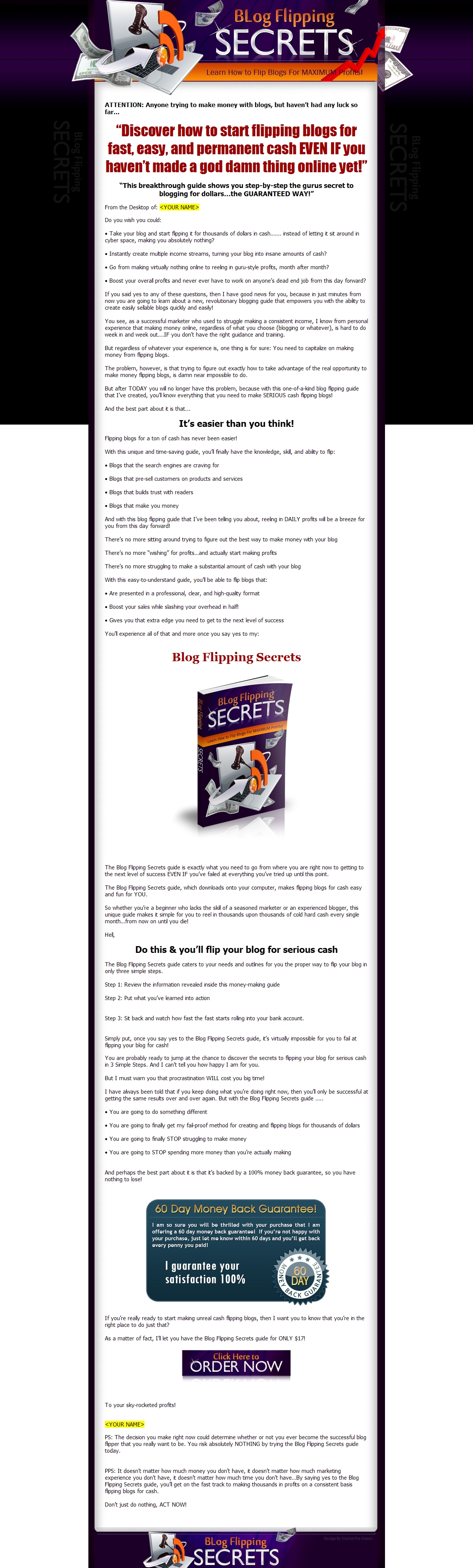 Discover how to start flipping blogs for fast, easy, and permanent cash EVEN IF you haven’t made a god damn thing online yet!”