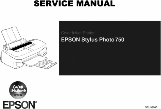 Official service manual for Epson Stylus Photo 750 inkjet printer as reference for professional technician to maintain and repair the product.