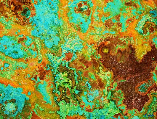 Paintings with a certain technic whith oxidation on metal. This is later on transformed in the final digital picture.