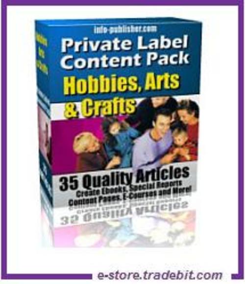 There are literally 100's of uses for this high quality Hobbies, Arts & Crafts Related Private Label Content Pack. You'll receive Private Label Rights (Which You Can Also Sell On) to 35 enjoyable articles.