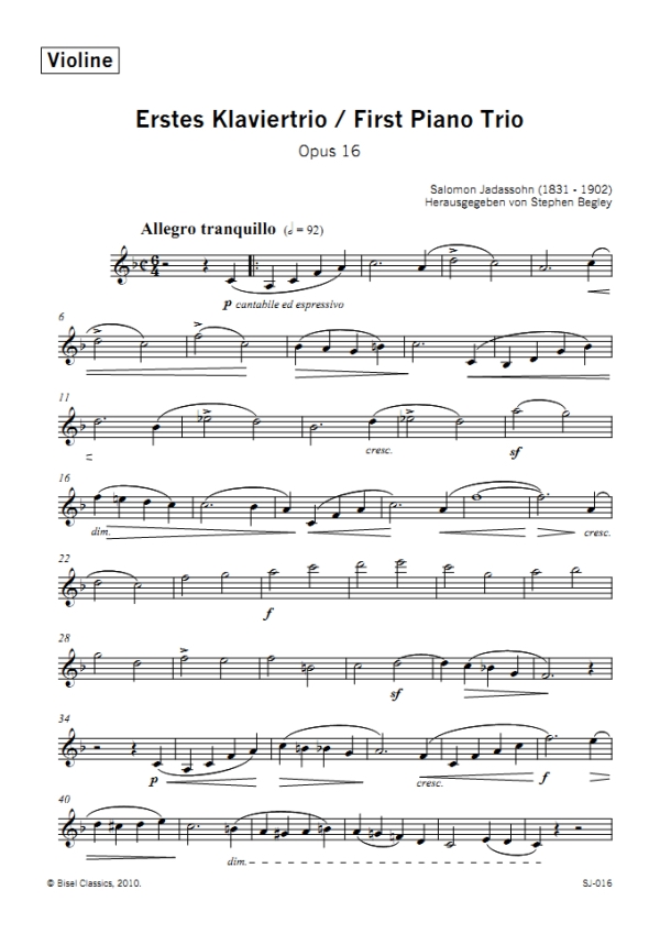 Jadassohn: Erstes Klaviertrio / 1st Piano Trio - Violine
