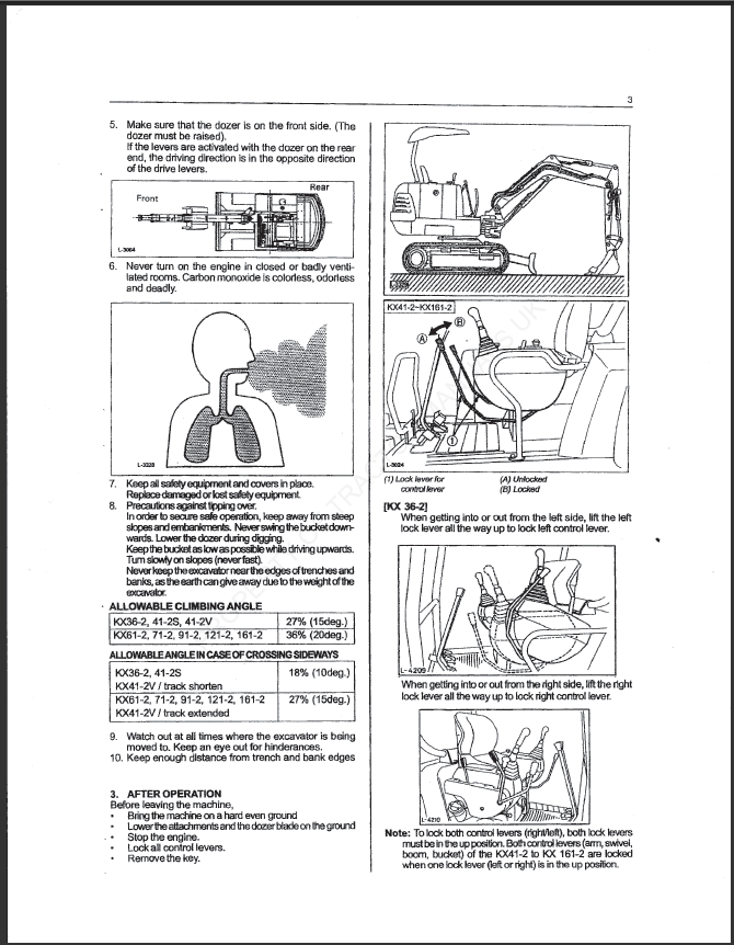 Kubota KX Operators Manual models covered KX36-2 41-61-71-91-121-161, there are 131 pages on usage and service information what buttons do what and what switches control what,packed with diagrams and photos, very high quality,