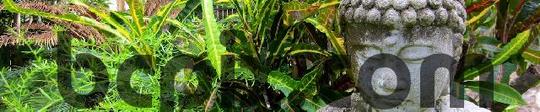 A Buddha statue sits in a peaceful garden in Holly Hill, Florida, web banner picture. (Photo by Brian Cleary/https://www.tradebit.com)