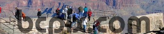 Visitors look out at the Grand Canyon in Arizona, USA, web banner picture. (Photo by Brian Cleary/https://www.tradebit.com)