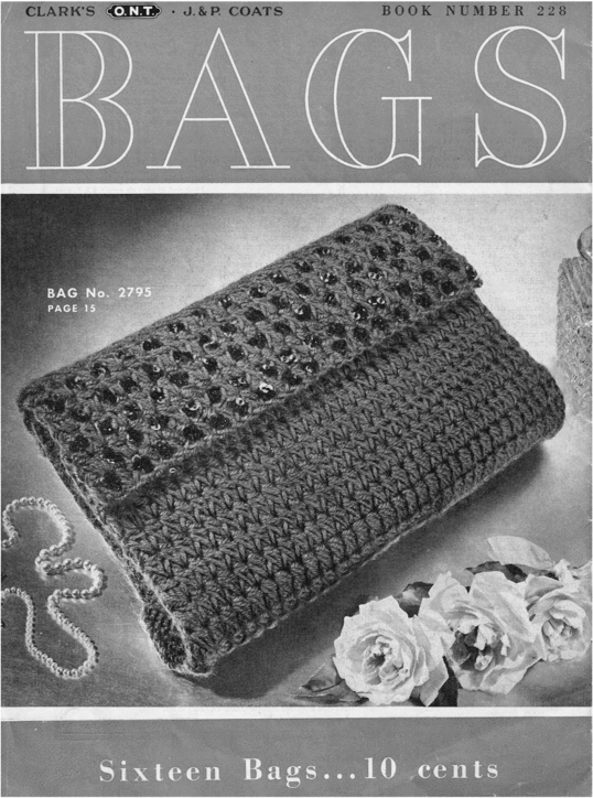 Handbags and Purses to crochet and knit: Theses bags that are roomy but not bulky; Easy to open and close, comfortable to carry; Above all, smart and new, one to match every costume and every mood. Originally published in 1945 by The Spool Cotton Company, this booklet contains 16 handbag & purse patterns for you to crochet and knit. All patterns come with complete instructions.