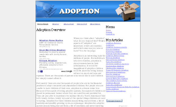 Having high quality web sites are the core of a virtual real estate empire, and this adoption website is a fully optimized, content-rich web business in a guaranteed hot topic.