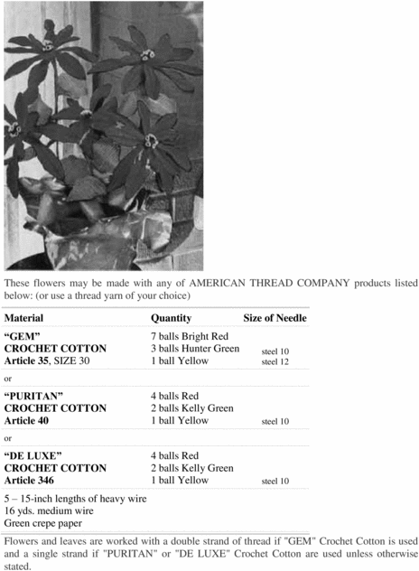 Christmas Crochet Craft Pattern - Crochet a Poinsettia Plant - complete instructions and photos of this vintage crochet pattern