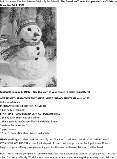 This pattern was originally published in The American Thread Company in Star Christmas Book, No. 94, in 1952 It has been digitally edited and converted to downloadable format (by Bookdrawer) for viewing on the Kindle wireless reading device.