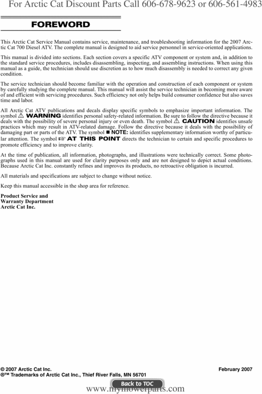 Full Service Manual for the 2007 Arctic Cat 700 Diesel atv