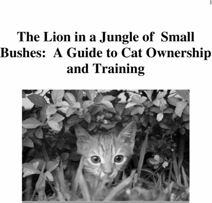 Thats right, despite popular opinion, cats really can be trained and in The Lion in a Jungle of Small Bushes: A Guide to Cat Ownership and Training, Ill reveal all the secrets you need to know to do it quickly and easily!