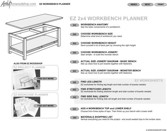 Easily plan and design a affordable workbench for your garage or workshop. Includes design options and calculation worksheets