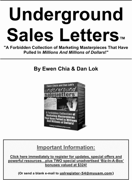 Get the best from the Marketing Masters Ewen Chia and Dan Lok. 454 pages of pure gold! Cant Write, YOU DONT HAVE TO, you get more sales pages than you would likely use in 5-years!