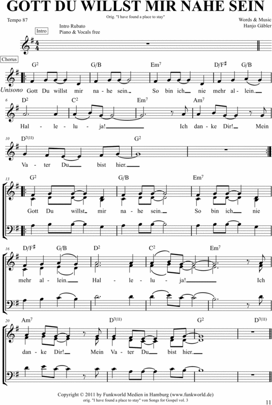 Deutscher Gospelsong. Hier die Noten dazu mit Akkordangaben. (Hanjo Gäbler)