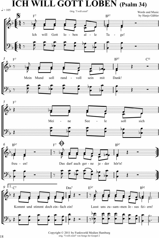 Deutscher Gospelsong. Hier die Noten dazu mit Akkordangaben. (Hanjo Gäbler)