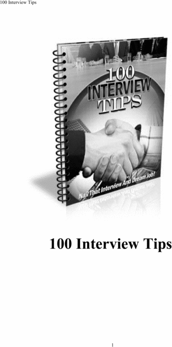 “100 Interview Tips” is a very practical compendium of the best interview advice available today. If you follow these 100 tips, you’ll set yourself apart from 99% of all the job applicants today, even if the market is much more competitive.