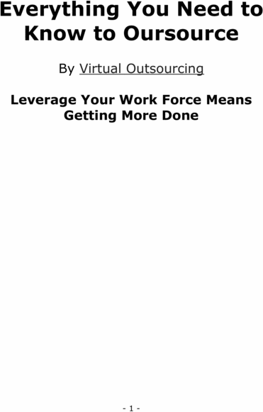 This simple, easy to follow, 36 page report will get you on your way to making intelligent outsourcing decisions. Once you have this important background, you will be in a much better position to understand the ins and outs of outsourcing and how to manage your projects and contractors. For only $8.97, this report could save you countless hours and costly mistakes.