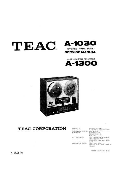 Teac A-1030 & A-1300 reel tape recorder Service Manual