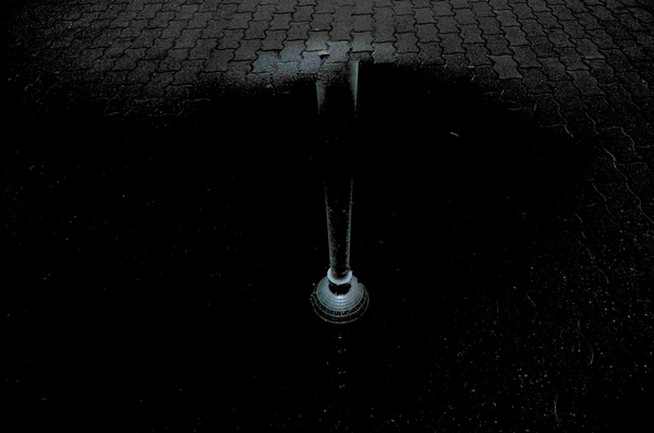 Reflexion des Berliner Fernsehturms in Pfütze.