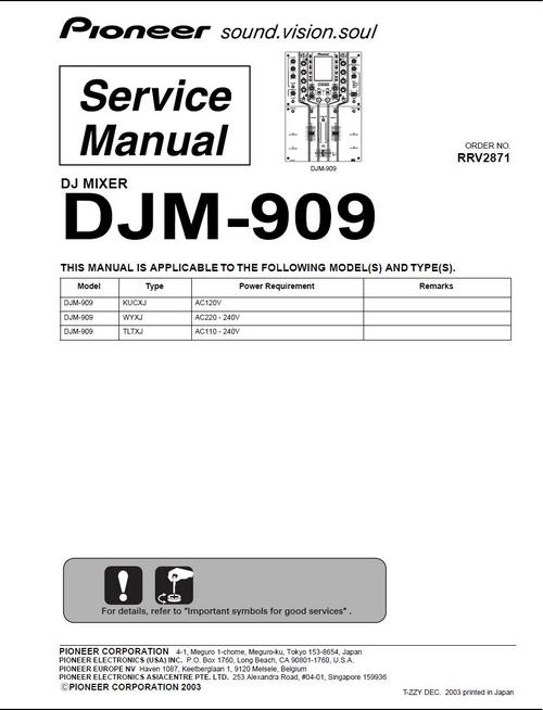 Pioneer DJM-909 Mixer , Original Service Manual