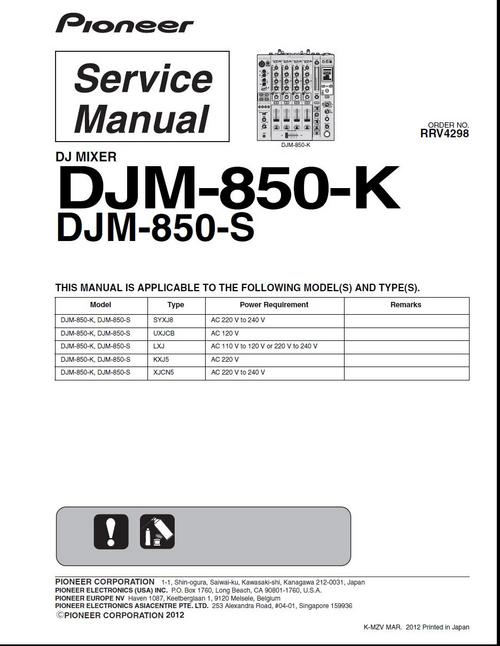 Pioneer DJM-850 Mixer , Original Service Manual
