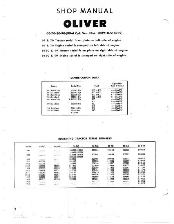 OLIVER TRACTOR 60 70 80 90 SHOP MANUAL