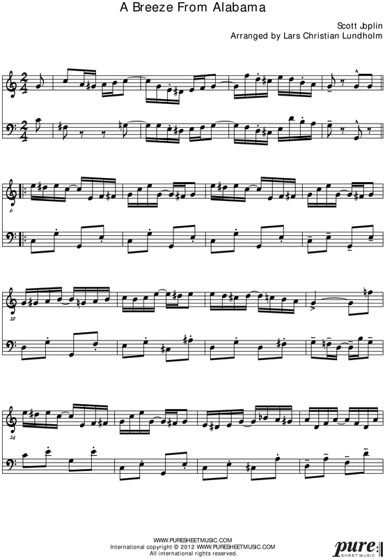 Pure Keywords: Violin and Double Bass, A Breeze from Alabama, Scott Joplin, Lars Christian Lundholm, Ragtime, sheet music, arrangement, duet, download, puresheetmusic, music ebook, A rag time two step, rag, Jazz, New Orleans, classics
