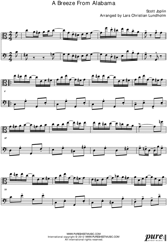 Pure Keywords: Viola and Double Bass, A Breeze from Alabama, Scott Joplin, Lars Christian Lundholm, Ragtime, sheet music, arrangement, duet, download, puresheetmusic, music ebook, A rag time two step, rag, Jazz, New Orleans, classics