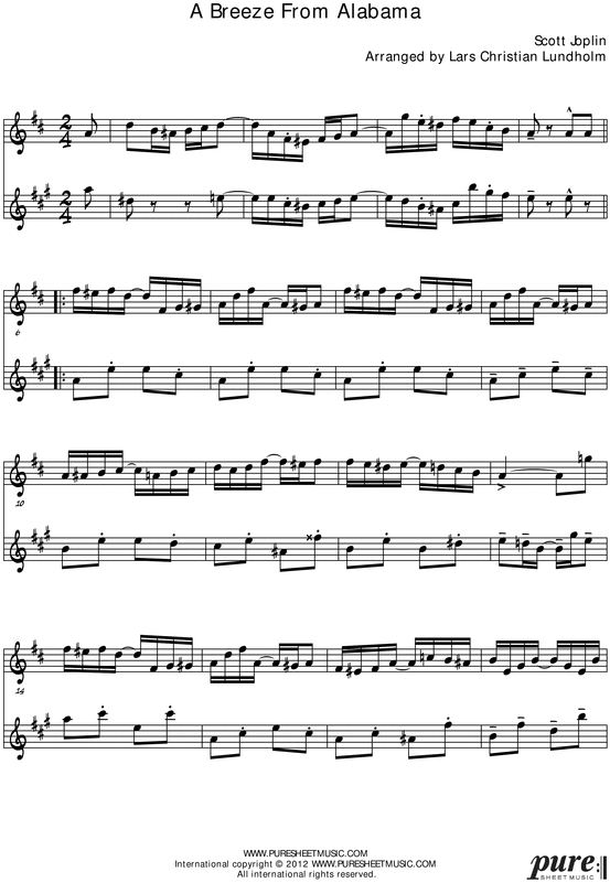 Pure Keywords: Tenor Saxophone and Baritone Saxophone, A Breeze from Alabama, Scott Joplin, Lars Christian Lundholm, Ragtime, sheet music, arrangement, duet, download, puresheetmusic, music ebook, A rag time two step, rag, Jazz, New Orleans, classics
