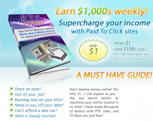 Start making money online! For only $1, I will expose to you the top secret tactics to maximise your online income in no time! I have made thousands of dollars with PTC sites, and Ill show you just how!