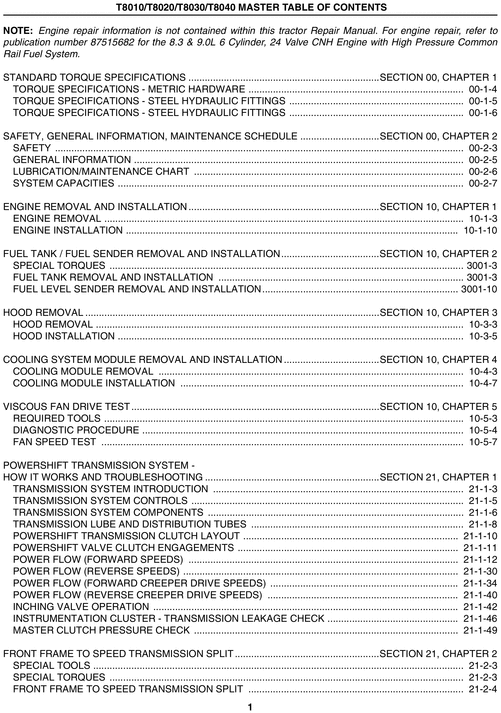 New Holland T8010 T8020 T8030 T8040 workshop service manual
