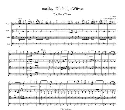 Lehar medley Die Lutige Witwe (The Merry Widow), for string quartet, CL001