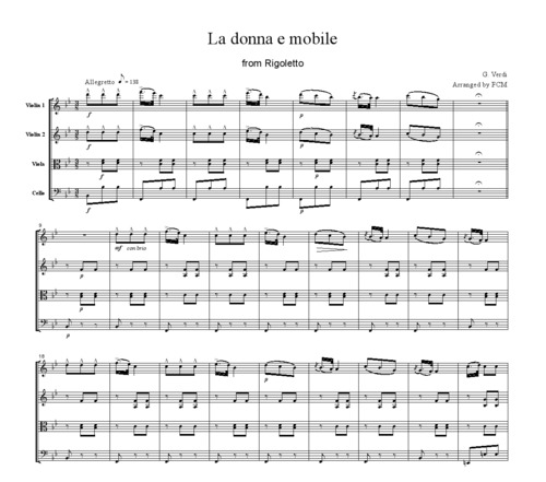 Verdi La donna e mobile from Rigoletto, for string quartet, CV004