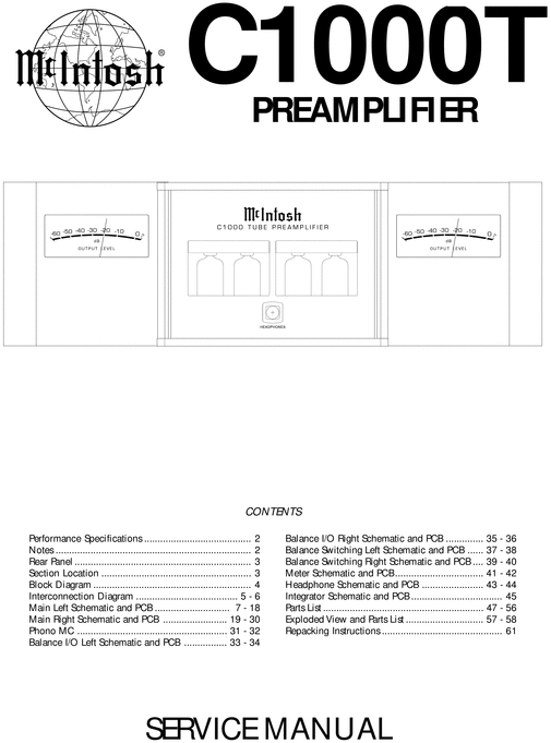 McIntosh C-1000T before sn WH1000 , Original Service Manual