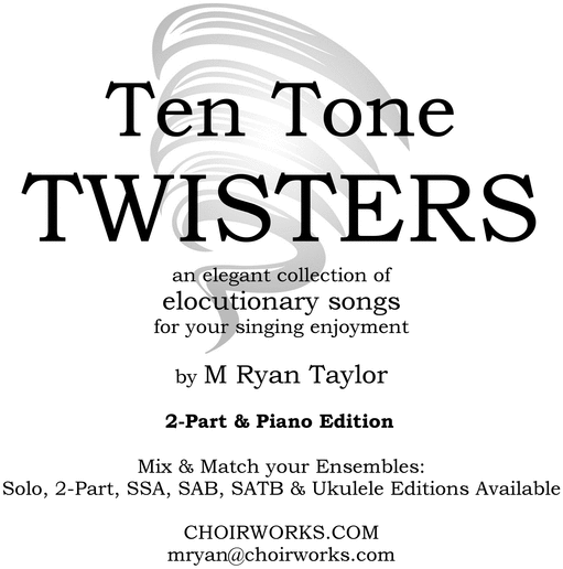 Ten Tone TWISTERS : an elegant collection of elocutionary songs for your singing enjoyment by M Ryan Taylor. 2-part Choir and Piano Edition.