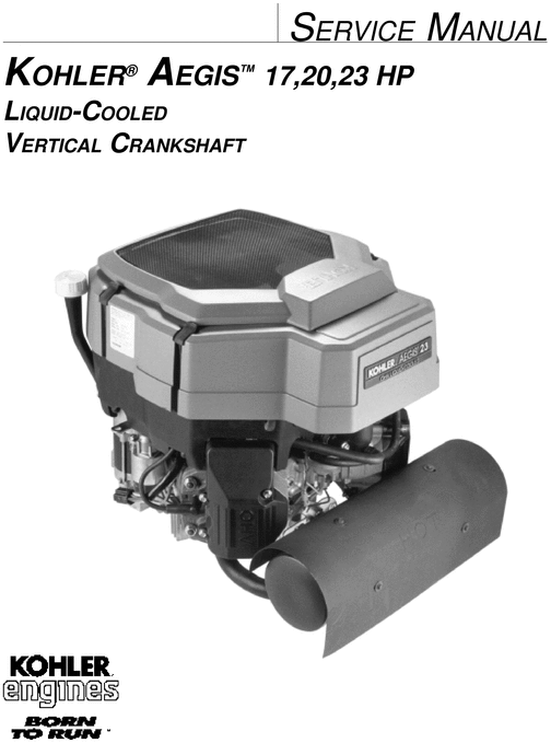 This is the most complete Service Repair Manual for the Kohler AEGIS 17,20 23 HP Liquid-Cooled Vertical Crankshaft Engines.