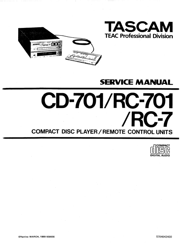 Tascam CD-701 , RC-701 & RC-7 , Service Manual