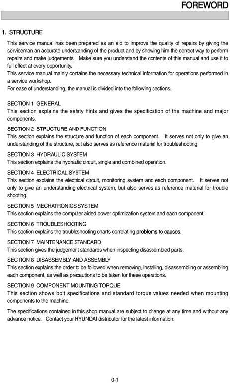 Hyundai Crawler Excavator R110-7 Service Manual