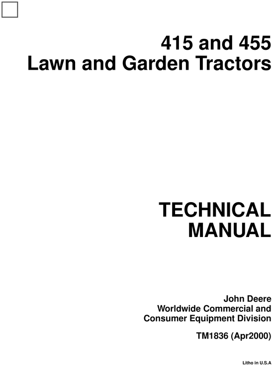 JD415 and 455 Lawn & Garden Tractors Repair Service Technical Manual TM-1836
